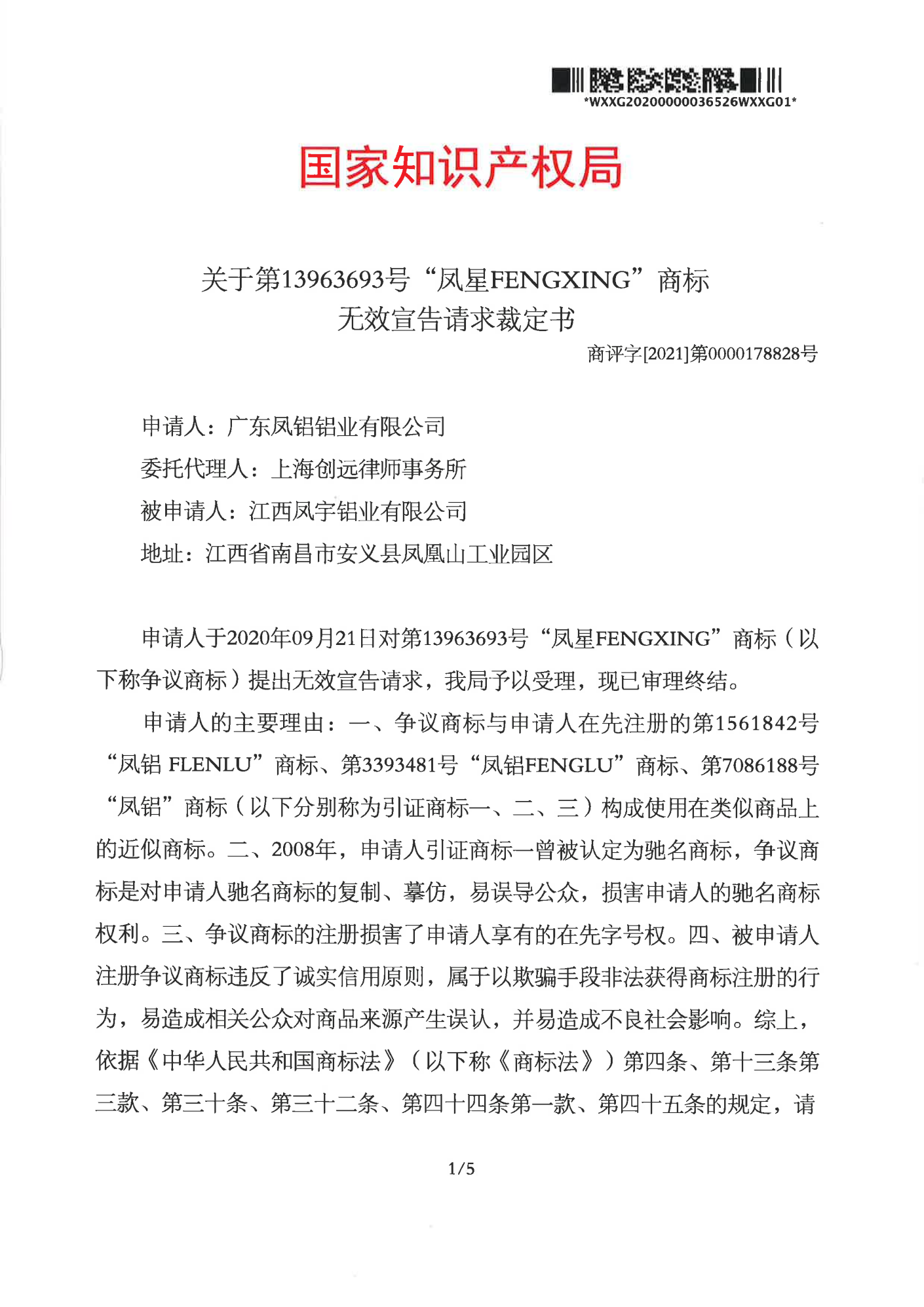山南辉知队 | 国家知识产权局:“凤星”商标无效