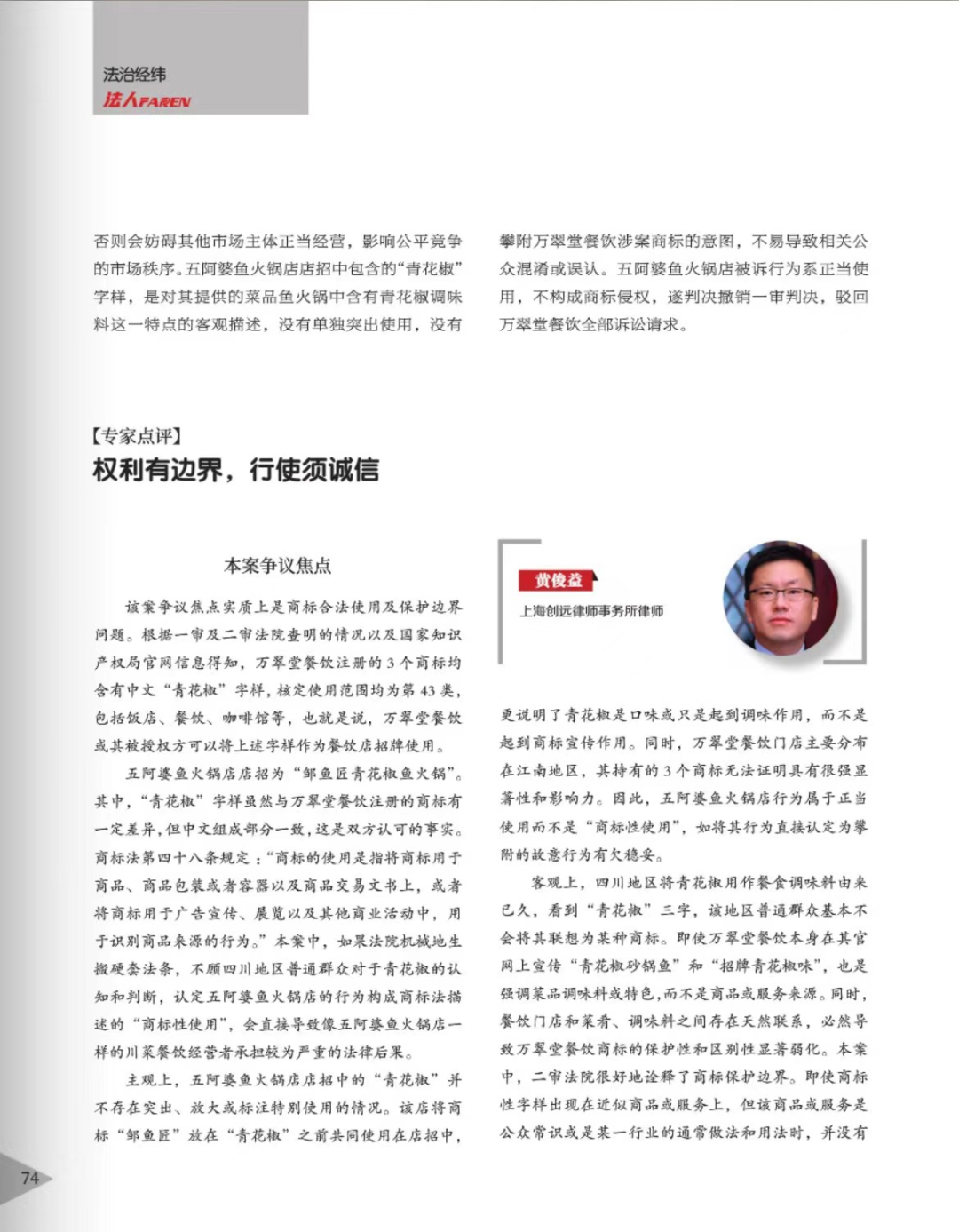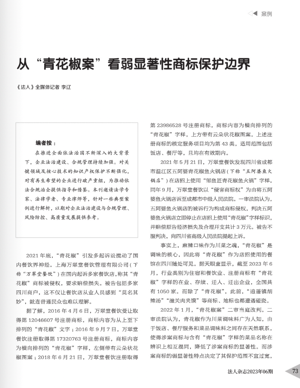 山南辉知简讯 | 辉知队黄俊益律师应“法治日报”旗下杂志邀请,就“青花椒”案发表专家点评